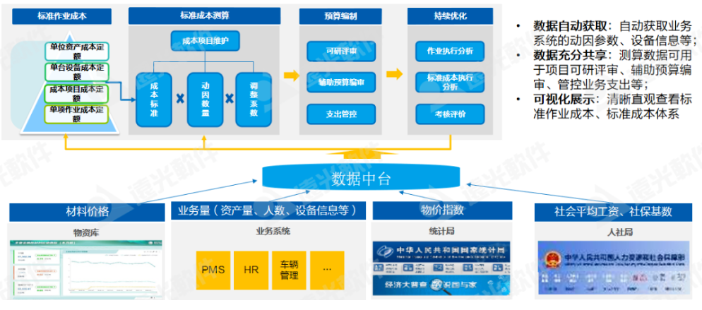 遠(yuǎn)光軟件全面預(yù)算管理通過打造涵蓋各板塊、各業(yè)務(wù)的企業(yè)級成本標(biāo)準(zhǔn)庫,輔助企業(yè)預(yù)算編制,提高企業(yè)預(yù)算編制的準(zhǔn)確性及公平性,并通過連接統(tǒng)計(jì)局、物價(jià)局相關(guān)數(shù)據(jù)指標(biāo),快速采集和更新動(dòng)因數(shù)據(jù),實(shí)現(xiàn)標(biāo)準(zhǔn)成本的動(dòng)態(tài)修編,提高標(biāo)準(zhǔn)成本體系的適用性、精準(zhǔn)性。