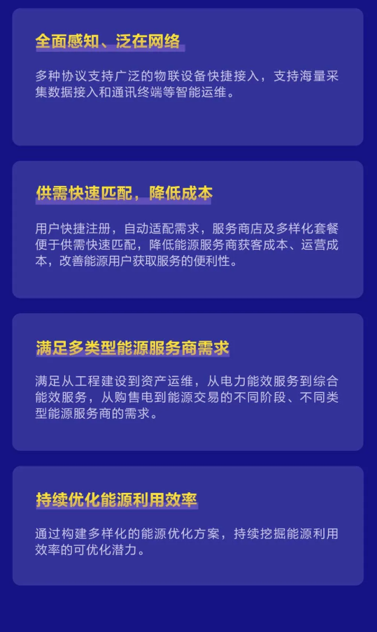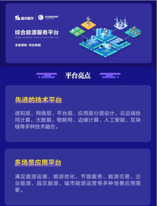 遠(yuǎn)光綜合能源服務(wù)平臺(tái)是以物聯(lián)網(wǎng)為載體,以大數(shù)據(jù)、人工智能等技術(shù)為基礎(chǔ),提供綜合能源供應(yīng)、銷售、消費(fèi)服務(wù)的綜合服務(wù)云平臺(tái)。平臺(tái)以能源用戶為中心,提供信息采集、能效分析、節(jié)能服務(wù)、需求響應(yīng)、能源托管、能源交易等服務(wù),為綜合能源服務(wù)商的客戶服務(wù)、業(yè)務(wù)創(chuàng)新、商業(yè)模式創(chuàng)新等提供支持。平臺(tái)可支撐企業(yè)綜合能源、園區(qū)綜合能源、智慧城市綜合能源運(yùn)營(yíng)。