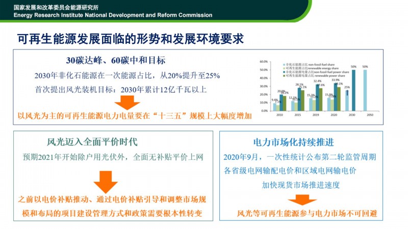 時璟麗老師在“2021光伏領袖大會”上的發(fā)言稿。時老師認為:可再生能源要在能源轉(zhuǎn)型中發(fā)揮重要作用。2050年,中國要建成高比例可再生能源電力系統(tǒng)。其中,非化石能源占比將達到91%,風電、光伏占比將達到73%!未來可再生能源的發(fā)展,從資源、技術、產(chǎn)業(yè)、經(jīng)濟性角度,均不存在瓶頸與障礙!