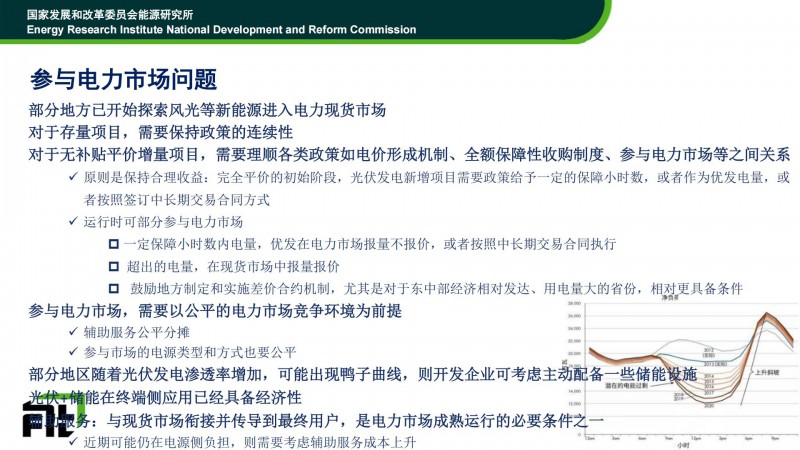 對于風電、光伏參與市場化交易,時老師認為:1)對于存量項目,要保證政策的延續(xù)性;2)對于新增項目,要建立公平的電力市場環(huán)境為前提,做好輔助服務費用分攤、參與的類型和方式也要公平。