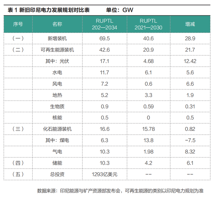 印尼清潔能源轉(zhuǎn)型受挫但目標(biāo)未變。2025年5月,印尼國(guó)家電力公司(PLN)正式發(fā)布了印尼電力發(fā)展規(guī)劃2025—2034(以下簡(jiǎn)稱(chēng)為《RUPTL2025—2034》)。從這版規(guī)劃中可以看出,印尼政府的清潔能源轉(zhuǎn)型目標(biāo)并未改變,可再生能源裝機(jī)仍然會(huì)得到大力發(fā)展。燃煤發(fā)電機(jī)組大幅減少,氣電機(jī)組增加。對(duì)比十年規(guī)劃,可以看出印尼政府仍然會(huì)加大可再生能源裝機(jī)的投資規(guī)模。2025年至2034年期間,印尼投資建設(shè)的光伏、風(fēng)電裝機(jī)將大幅增加,煤電裝機(jī)將大幅減少。另外,印尼新版規(guī)劃中,約70%的投資額(949億美元)分配給了獨(dú)立發(fā)電商,其中新能源投資額為813億美元。印尼政府對(duì)未來(lái)經(jīng)濟(jì)增長(zhǎng)的樂(lè)觀支持著電力裝機(jī)的增長(zhǎng)。據(jù)稱(chēng),印尼如此大規(guī)模的電力發(fā)展計(jì)劃是為了支撐實(shí)現(xiàn)印尼2025—2029年間,年均增速8%的經(jīng)濟(jì)增長(zhǎng)目標(biāo)。