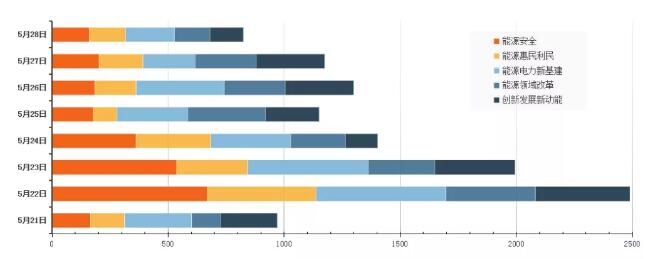 根據(jù)中電傳媒能源情報研究中心輿情監(jiān)測室監(jiān)測,能源安全、能源惠民利民、能源電力新基建、能源領(lǐng)域改革、創(chuàng)新發(fā)展新動能等輿論熱度較高。能源安全的輿情監(jiān)測結(jié)果中,包含了能源供應(yīng)、石油天然氣儲備等相關(guān)報道;能源惠民利民的輿情監(jiān)測結(jié)果中,包含了降低用能成本、降低工商業(yè)電價5%政策延長到今年年底、農(nóng)村電網(wǎng)建設(shè)、清潔取暖等相關(guān)報道;能源電力新基建的輿情監(jiān)測結(jié)果中,包含了能源電力新基建、充電樁、能源互聯(lián)網(wǎng)等相關(guān)報道;能源領(lǐng)域改革的輿情監(jiān)測結(jié)果中,包含了電力體制改革、油氣體制改革、國資國企改革等相關(guān)報道;創(chuàng)新發(fā)展新動能的輿情監(jiān)測結(jié)果中,包括了氫能、儲能、能源技術(shù)裝備創(chuàng)新以及智慧能源等相關(guān)報道。