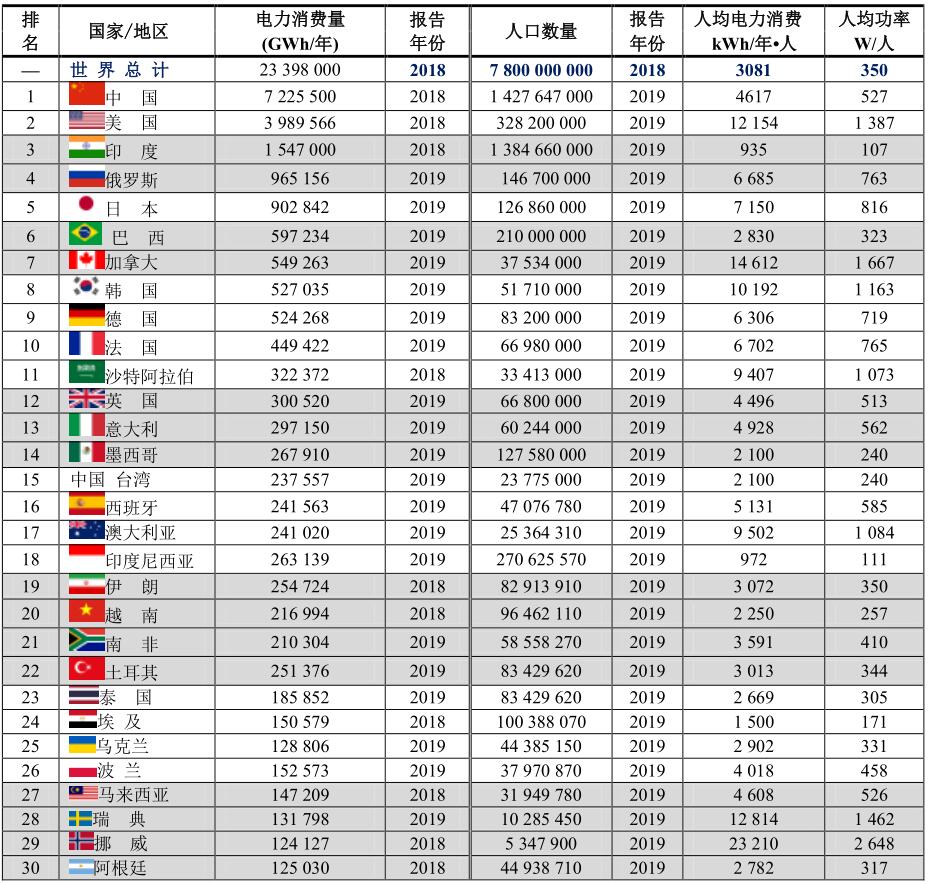 本數(shù)據(jù)電力消費量來自美國能源情報署(IEA)人口數(shù)據(jù)來自世界銀行。