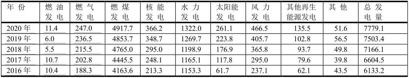 中國(guó)各種能源發(fā)電量(單位:TWh)