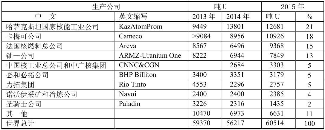 本數(shù)據(jù)是世界核能協(xié)會(huì)(WNA)于 2020年12月份提供的從鈾礦生產(chǎn)(公噸U)的數(shù)據(jù)。