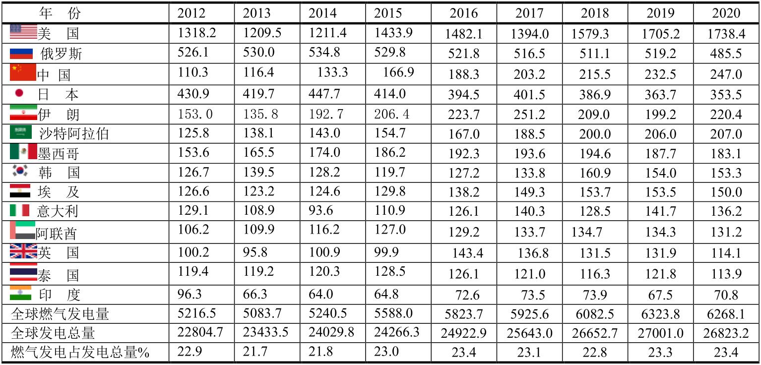 燃氣發(fā)電量最多的國家