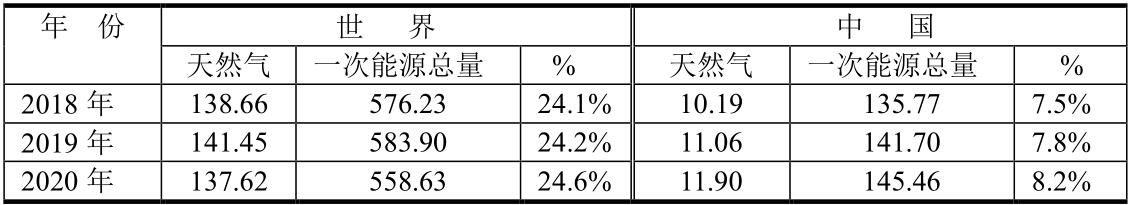2020年世界天然氣消費占全球一次能源消費的24.6%,但中國僅占8.2%,仍然遠低于世界平均水平。