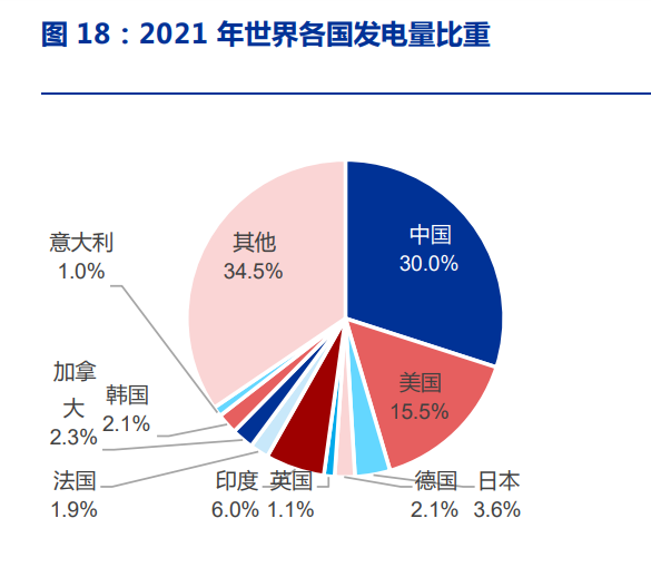 我國面臨著人類歷史上最為艱巨的新能源轉(zhuǎn)型之路。中國如今已經(jīng)擁有全世界最大的 電力系統(tǒng),2021 年我國發(fā)電量占全球比例已達到 30%,接近第二名美國的 2 倍,更重要 的是我國的用電規(guī)模仍在快速增長,2021 年我國全年新增發(fā)電量達 7552 億千瓦時(BP 口徑),是德國 2021 年全國用電量的接近 1.3 倍,而德國總發(fā)電量從近 20 年基本維持在 穩(wěn)定水平。