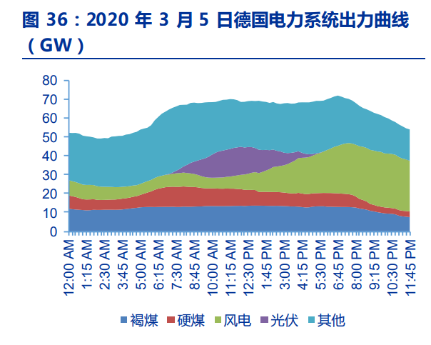 煤電是當(dāng)前潛力最大的靈活性資源之一。截止 2022 年底我國煤電裝機已突破 12 億千 瓦,后續(xù)仍將保持一定規(guī)模的建設(shè)。但我國煤電靈活性較差,純凝機組不經(jīng)過改造最低出 力一般只有額定容量的 50%左右,熱電聯(lián)產(chǎn)機組在供熱期則更差。如果通過改造將最低出 力降低至 25%則可以釋放出僅 5 億千瓦調(diào)節(jié)能力,大約相當(dāng)于 250GW 抽水蓄能,是現(xiàn)存 抽蓄調(diào)節(jié)能力的 5 倍。德國 2021 年煤電利用小時數(shù) 3664 小時,其中硬煤 4980 小時,褐 煤 2346 小時,中國 2022 年利用小時數(shù)達到近 4700 小時,仍有進一步下降空間;(2) 以日內(nèi)波動來看,德國 2020 年 3 月 5 日晚間風(fēng)電出力大幅增加,從午間約 7GW 大幅增 加至晚間超過 28GW,硬煤發(fā)電迅速從最高 10.7GW 調(diào)減至不足 3GW,日內(nèi)壓低負荷到 30%以下,為新能源消納做出巨大貢獻。