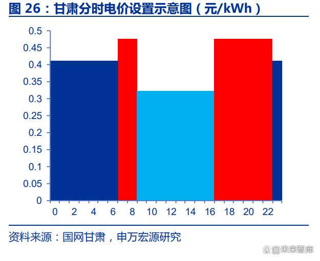 我國各省峰谷電價設(shè)置主要有四種模式: (1)谷時段處于白天,可進行一次峰谷和一次峰平套利:以新能源比例較高的西北 部分省份,如寧夏、甘肅、青海等地為代表,通常整個白天均為谷時段,早上和晚上為峰 時段。這些地區(qū)可以設(shè)置兩充兩放策略,但僅能進行一次峰—谷和一次峰—平套利,且由于本地電價水平較低,價差不明顯。以甘肅 110kV 兩部制電價為例,峰-谷價差僅為 0.15 元/kWh,峰-平價差 0.063 元/kWh,經(jīng)濟性較差。 (2)中午和凌晨均設(shè)置谷時段,可進行兩次峰谷套利:以浙江、新疆、山西等省份 為代表,通常在午間和凌晨設(shè)置低谷時段,早上和下午(或晚間)設(shè)置高峰或尖峰時段, 這樣可以享受兩次峰-谷套利,是最適合工商業(yè)峰谷套利的地區(qū)。浙江省 110kV 兩部制電 價兩次峰—谷平均價差為 0.7 元/kWh,如果兩次尖峰—谷套利,價差則為 0.9 元/kWh, 完全具備投資價值。 (3)凌晨為谷時段,中午為平段,可進行一次峰谷和一次峰平套利:其余大多數(shù)省 份,通常凌晨為谷時段,午間為平時段,這些省份只能進行一次峰—谷和一次峰—平套利, 但由于部分發(fā)達省份電價水平較高且電價水平差距較大,仍有可能具備峰谷套利經(jīng)濟性。 如廣東省 110kV 兩部制用戶平均價差 0.68 元/kWh,7—9 月實行尖峰電價時平均價差 0.97 元/kWh,年平均價差達到 0.75 元/kWh。 (4)僅中午設(shè)置谷時段,僅能進行一次峰谷套利:代表省份是山東省,雖然中午設(shè) 置為低谷甚至深谷,但由于高峰期緊貼深谷,僅能進行一次峰谷套利,經(jīng)濟性不突出。