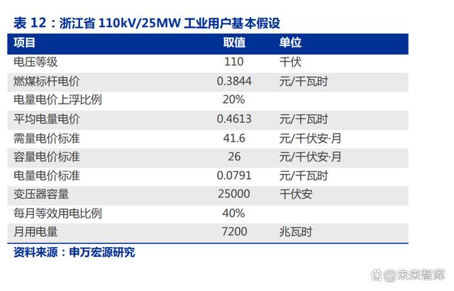 這條政策主要目的是推動工商業(yè)企業(yè)進行最高負荷管理,在保持總用電規(guī)模的前提下, 盡量降低最高用電負荷即可享受相應(yīng)的優(yōu)惠。我們以前文所述浙江 5MW/10MWh 工商業(yè) 儲能為例,假設(shè)公司配儲規(guī)模為變壓器容量的 20%,即變壓器容量為 25MW,假設(shè)接入 110kV 電網(wǎng),每月變壓器等效利用率為 40%,不配儲的情況下最高用電負荷為變壓器容 量的 70%,在配儲的情況下最多可以將最高用電負荷降低至變壓器容量的 50%。