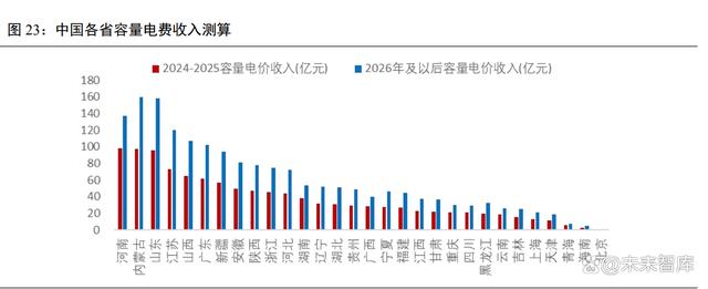 (3)煤電機組最大出力;煤電機組可獲得的容量電費,根據(jù)當(dāng)?shù)孛弘娙萘侩妰r和機組申報的最大出力確定,假設(shè) h 最大出力按額定容量的 100%。 按照各省煤電容量電價水平及煤電裝機容量(按容量電價適用率90%)測算,2024-2025年全國煤電容量電價收入預(yù)計 1121 億元,2026 年以后達到 1792 億元以上(不考慮煤電裝機變動情況,以及按